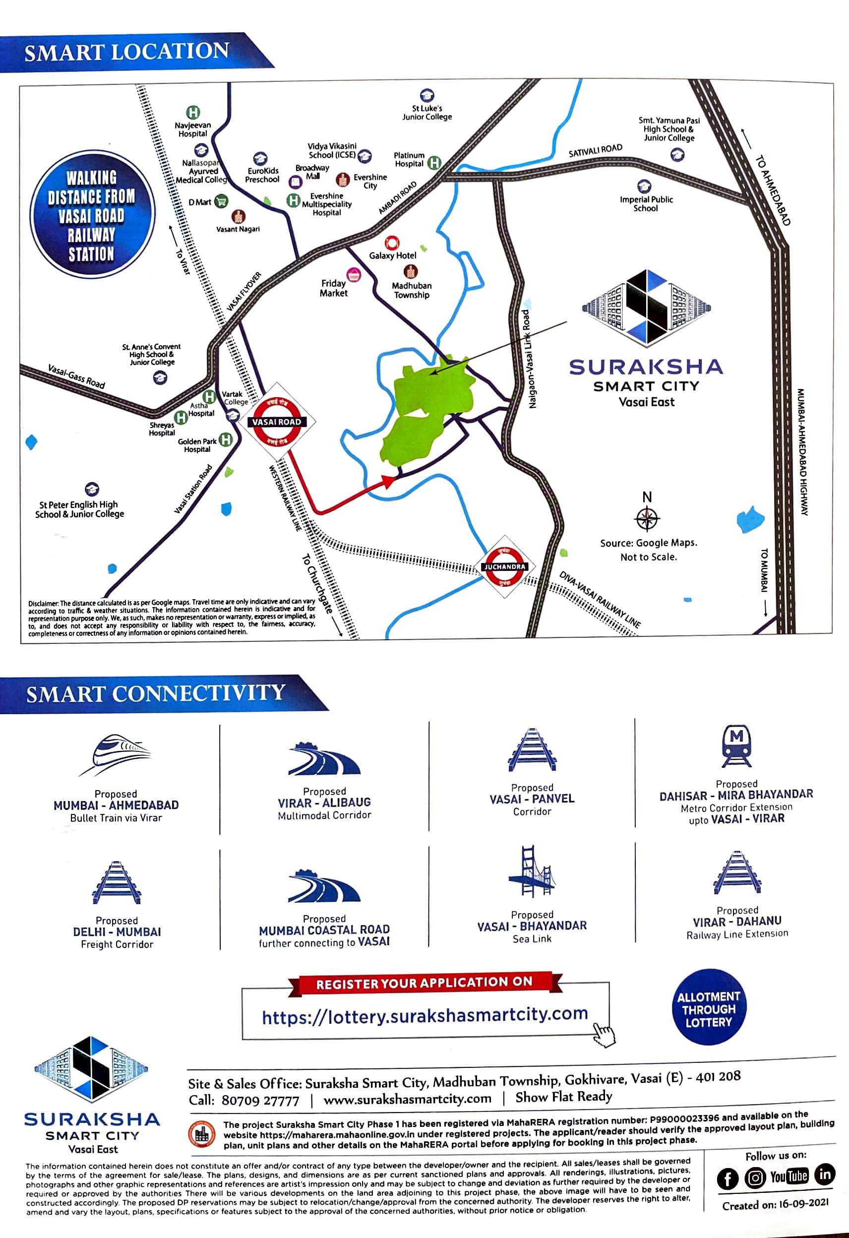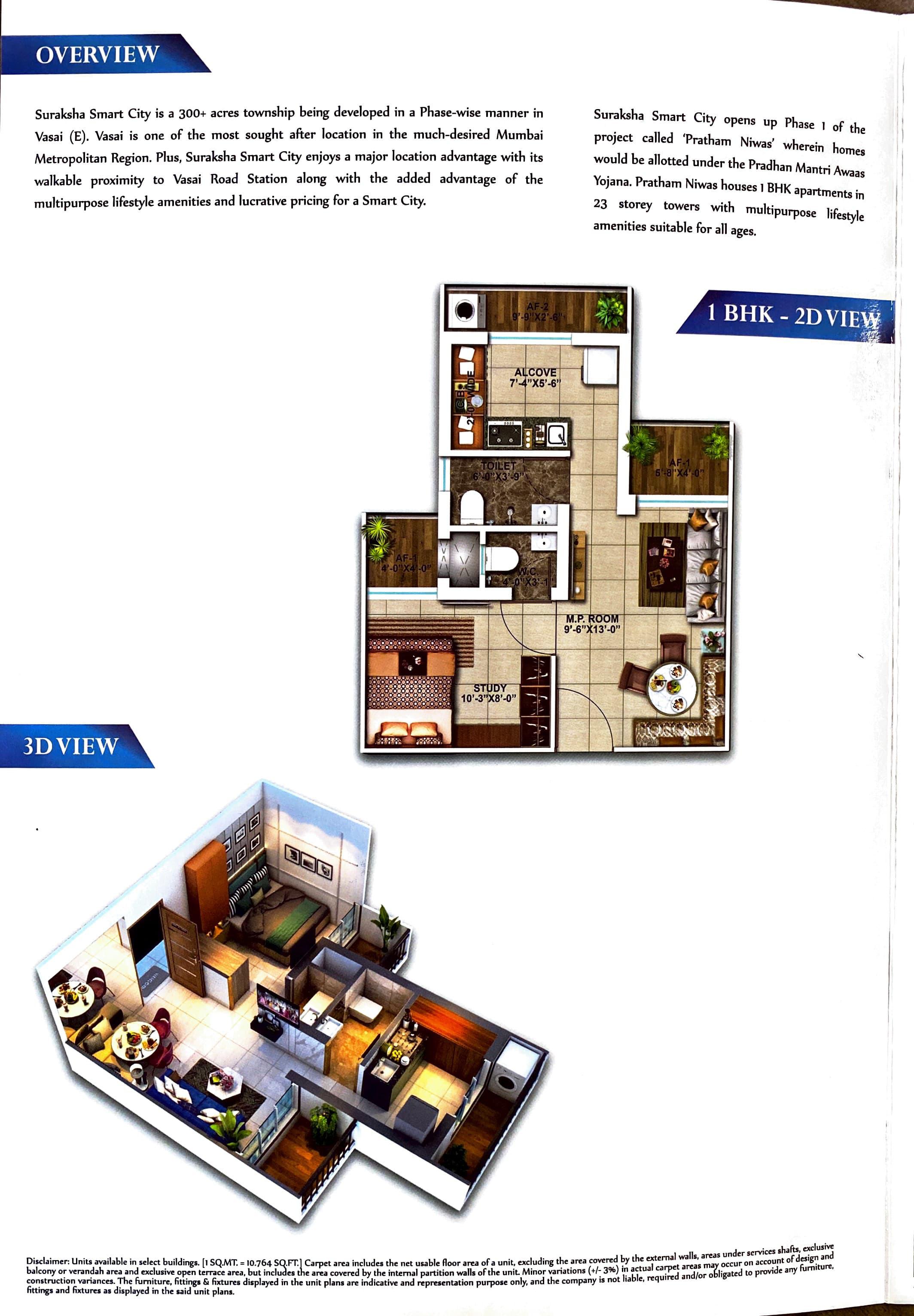 Suraksha Smart City Phase I is a residential project launched by Conceptual Advisory in Vasai, Mumbai. The project will be built over a total area of 1.18 acres and is offering 1 BHK apartments for sale. Carpet area of 1 BHK apartments is 287 sq ft. Amenities available for the convenience of residents are closed car parking areas, landscaping and tree planting, electrical meter room, sub-station, open parking areas, community buildings, open area for recreational activities, receiving station, well-lit internal roads, fire protection, fire safety equipment, stormwater drains, regular supply of water, and other facilities are provided in the complex. All work related to solid waste management and disposal, treatments and disposal of sewage and sullage water, sewerage chamber, lines, septic tank, and STP are handled in the premises. Water conservation, energy management, and rainwater harvesting are done to save resources Vasai is a popular area in Mumbai, it is famous for its churches, beaches and temples. Other prominent places near Vasai are Akola, Ahmednagar, Mumbai, Nashik and Pune. Infrastructure of the area is good with many reputed schools, educational institutes, and hospitals established here. Restaurants, banks, and other utility shops are also located in the vicinity. Vasai is well-connected to other areas by a network of road and rail transport. It is a comfortable locality to own a residential place. Suraksha Smart City Phase I is scheduled to be ready by December 2023 for possession. Apartments can be bought from real estate firm Conceptual Advisory.
