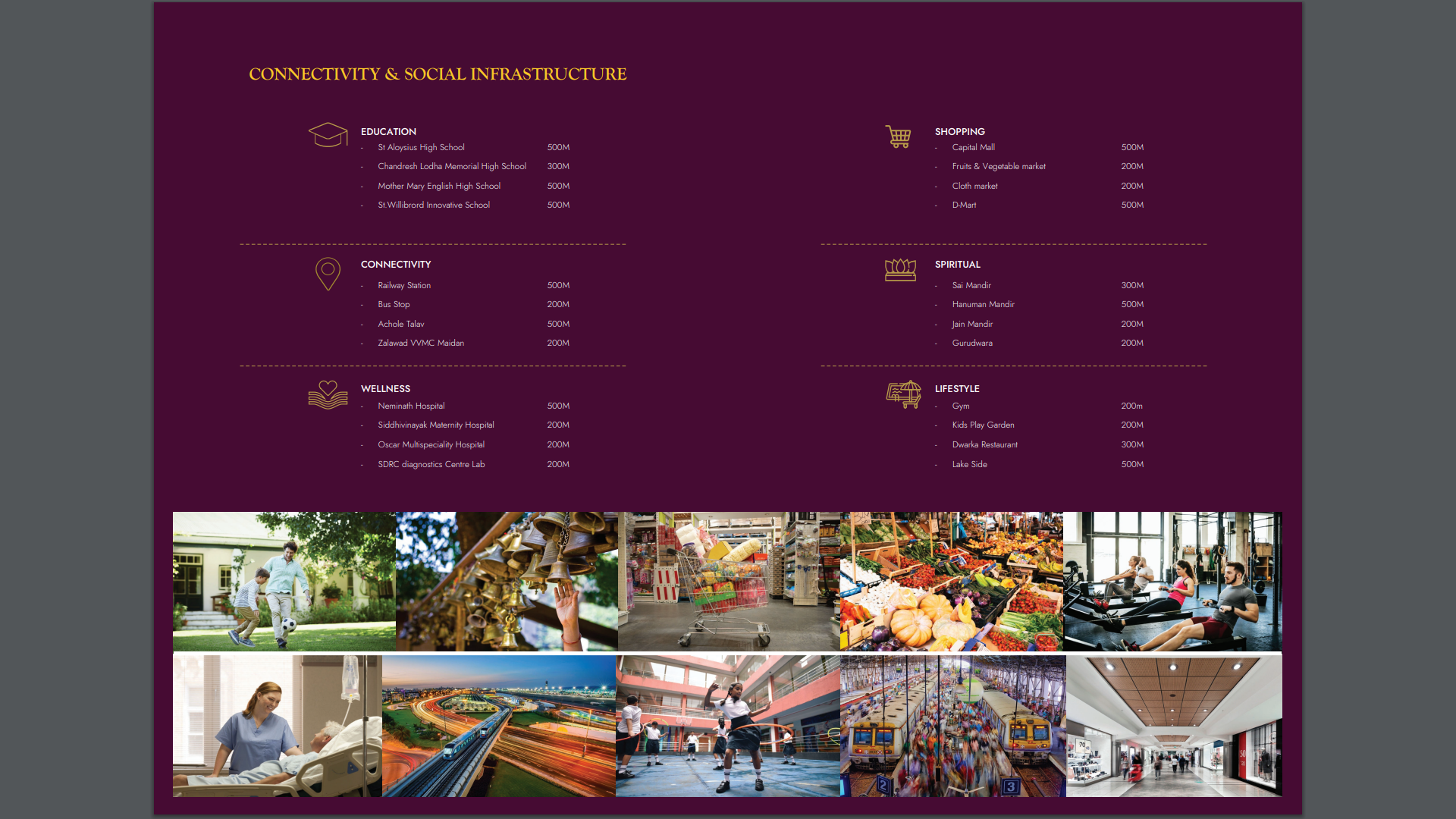 Nalasopara East is well-connected to other parts of city by road, which passes through the heart of this suburb. Prominent shopping malls, movie theatres, school, and hospitals are present in proximity of this residential project.