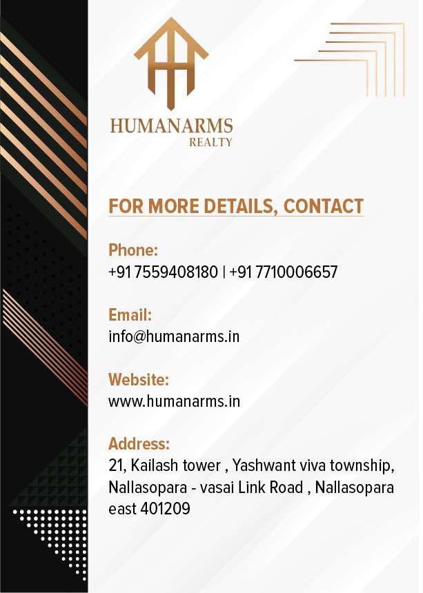 Suraksha Smart City Phase I is a residential project launched by Conceptual Advisory in Vasai, Mumbai. The project will be built over a total area of 1.18 acres and is offering 1 BHK apartments for sale. Carpet area of 1 BHK apartments is 287 sq ft. Amenities available for the convenience of residents are closed car parking areas, landscaping and tree planting, electrical meter room, sub-station, open parking areas, community buildings, open area for recreational activities, receiving station, well-lit internal roads, fire protection, fire safety equipment, stormwater drains, regular supply of water, and other facilities are provided in the complex. All work related to solid waste management and disposal, treatments and disposal of sewage and sullage water, sewerage chamber, lines, septic tank, and STP are handled in the premises. Water conservation, energy management, and rainwater harvesting are done to save resources Vasai is a popular area in Mumbai, it is famous for its churches, beaches and temples. Other prominent places near Vasai are Akola, Ahmednagar, Mumbai, Nashik and Pune. Infrastructure of the area is good with many reputed schools, educational institutes, and hospitals established here. Restaurants, banks, and other utility shops are also located in the vicinity. Vasai is well-connected to other areas by a network of road and rail transport. It is a comfortable locality to own a residential place. Suraksha Smart City Phase I is scheduled to be ready by December 2023 for possession. Apartments can be bought from real estate firm Conceptual Advisory.